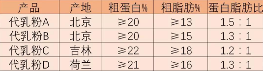 做產品,就是做動物的食品,為的就是讓經濟動物快速生長。而為了達到這個目的就需要一個最適合的營養標準。市面上的羔羊代乳粉營養大多參照母乳的干物質組成制定。下面以粗蛋白和脂肪為例,列舉市面代乳粉的大致營養標準。