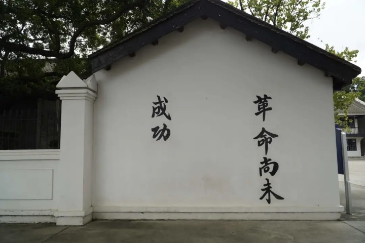 圍墻兩側粉刷著“革命尚未成功,同志仍需努力”的標語,警醒著當年的學子和一代又一代的后人。