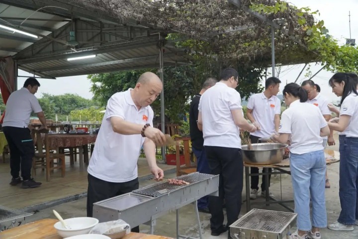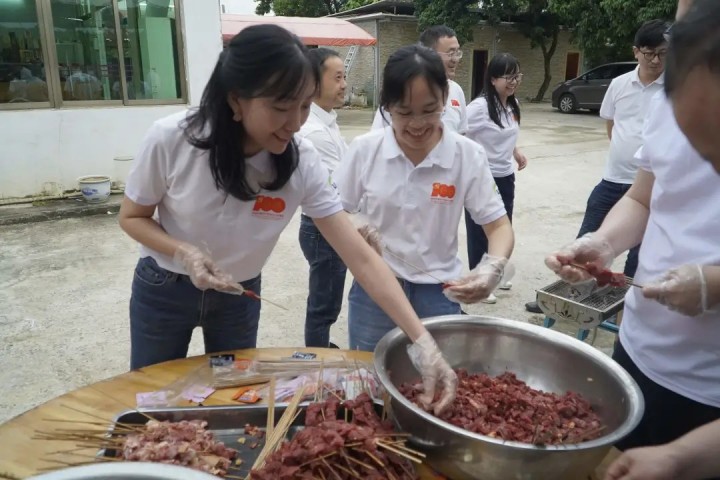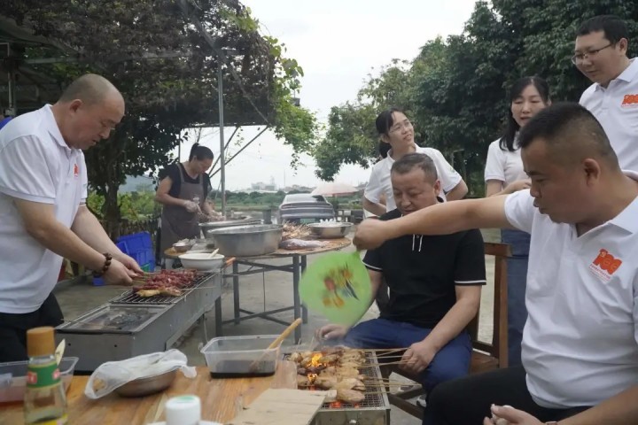雨后的風,清爽微涼,黃埔軍校游覽回來后,我們組織了團建BBQ及KTV活動,讓大家告別緊張的工作旋律,伴著金秋的微涼,感受大好時光。為了讓大家享受最美好的盛宴時光,我們顧總早早到場準備食材,安排洗凈切好,澆上烤汁腌制,待我們集體到位,不由分說立馬開工穿串,開火上烤,大塊肉串無不散發著東北“重工業”的濃厚香醇,又伴著南方細膩的烤制技術,實乃讓人大快朵頤!
